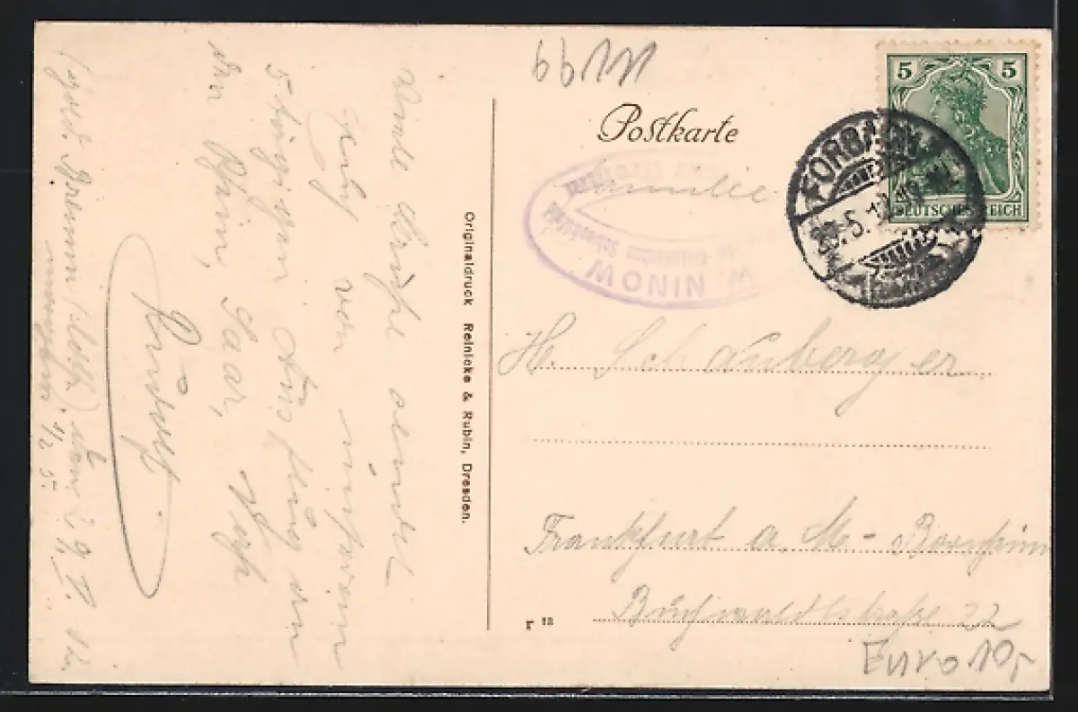 alte Ansichtskarte, gelaufen 1910, Stempelspur, guter Zustand