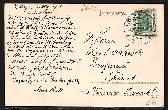 alte Ansichtskarte, gelaufen 1914, guter Zustand