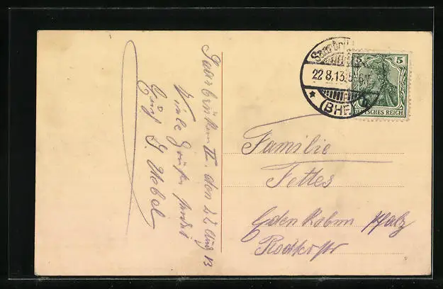 gelaufen 1913, Stempelspur, guter Zustand
