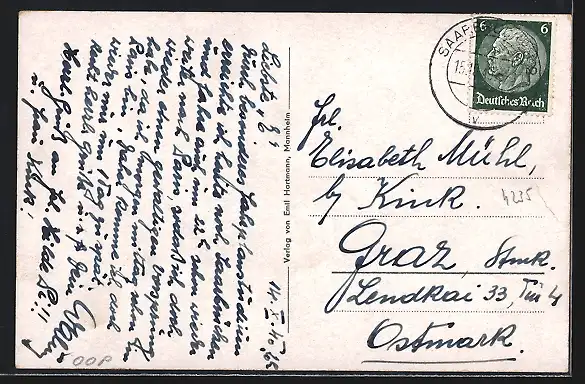 alte Ansichtskarte, gelaufen 1940, Bugspur li., guter Zustand