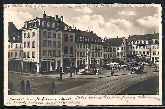 AK Saarbrücken, St. Johanner-Markt mit Geschäften