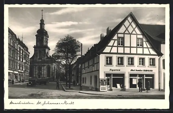 AK Saarbrücken, St. Johanner-Markt mit Zigarrengeschäft