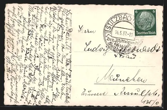 alte Ansichtskarte, gelaufen 1937, Stempelspur, guter Zustand