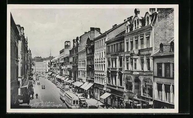 AK Saarbrücken, Strasse mit Strassenbahn