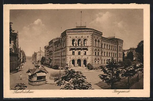 AK Saarbrücken, Strassenpartie mit Bergamt