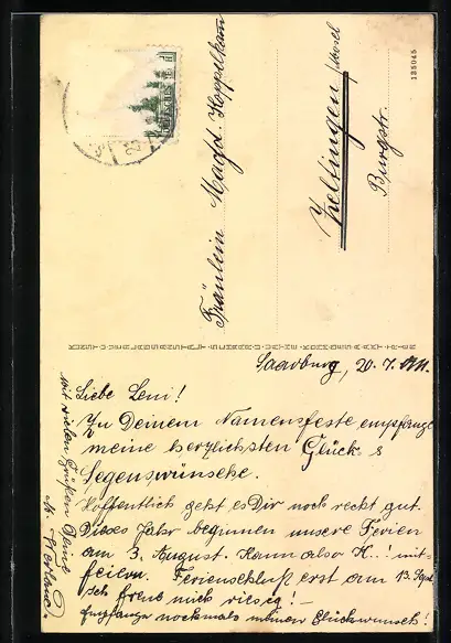 alte Ansichtskarte, gelaufen, Briefmarke entfernt, rückseitig Oberflächenschaden, guter Zustand