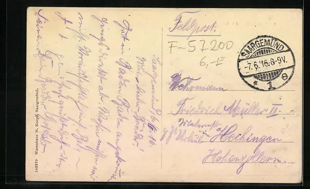 gelaufen 1916 als Feldpost, guter Zustand