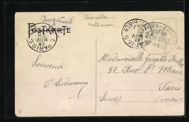 alte Ansichtskarte, gelaufen, Eckknick unten links, Abriebspuren unten mittig, guter Zustand