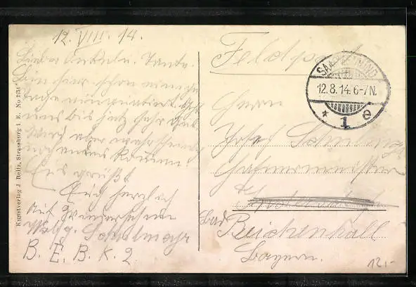 gelaufen 1914 als Feldpost, guter Zustand