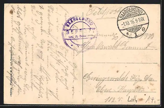 alte Ansichtskarte, gelaufen 1916 als Feldpost, guter Zustand