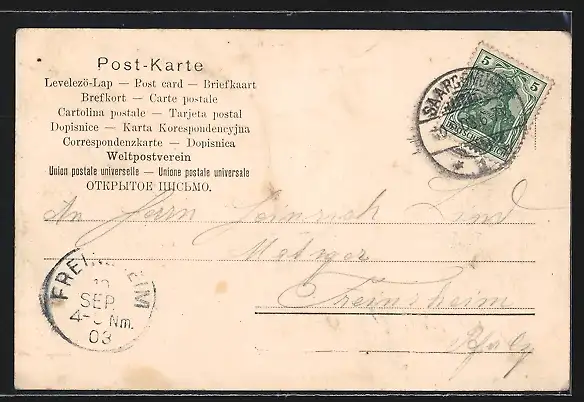 alte Ansichtskarte, gelaufen 1903, guter Zustand
