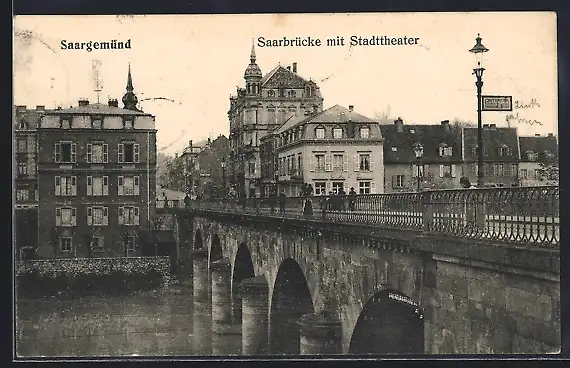 AK Saargemünd, Saarbrücke mit Stadttheater