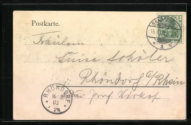 alte Ansichtskarte, gelaufen 1903, Bugspur links mittig, guter Zustand