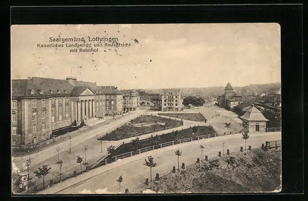 AK Saargemünd i. L., Kaiserliches Landgericht und Amtsgericht mit Bahnhof