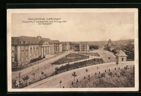 AK Saargemünd i. Lothr., Kaiserliches Landgericht und Amtsgericht mit Bahnhof