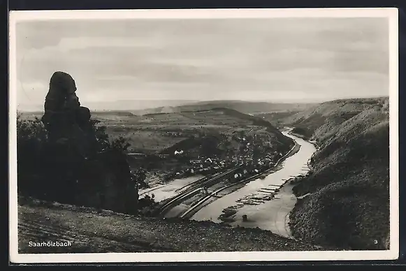 AK Saarhölzbach, Blick auf den Ort von einer Anhöhe aus