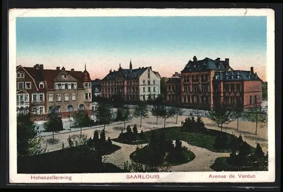 AK Saarlouis, Strasse Hohenzollernring mit Bäumen
