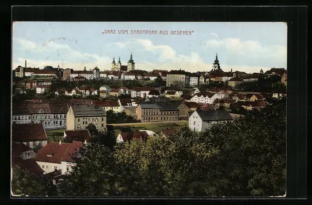 AK Saaz, Ortsansicht vom Stadtpark aus