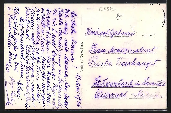 alte Ansichtskarte, gelaufen, Briefmarke entfernt, Eckknick oben li., guter Zustand