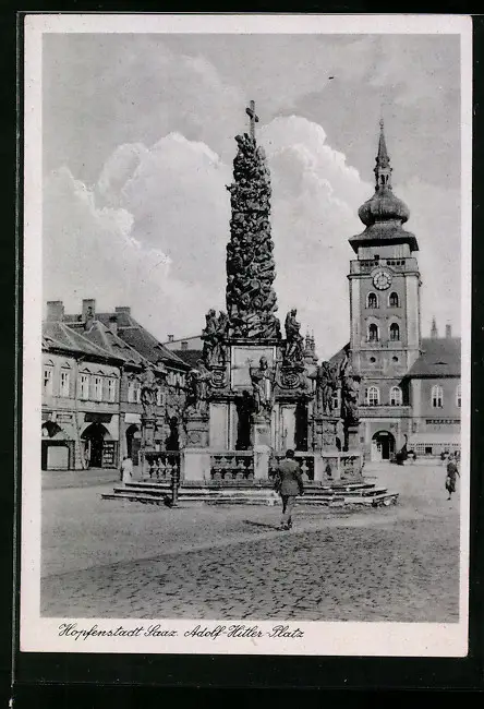 AK Saaz, Platz mit Denkmal