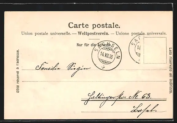 alte Ansichtskarte, gelaufen 1906, Briefmarke entfernt, guter Zustand