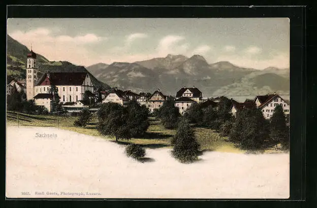 AK Sachseln, Ortsansicht mit Gebirgspanorama