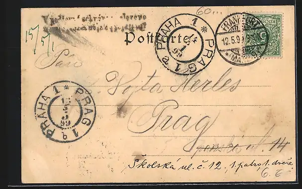 alte Ansichtskarte, gelaufen 1899, Stempelspur, guter Zustand