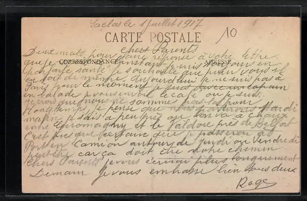 ungelaufen, Rückseite beschrieben 1917, guter Zustand