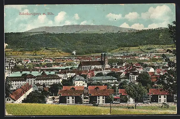 AK Säckingen a. Rh., Teilansicht mit Kirche