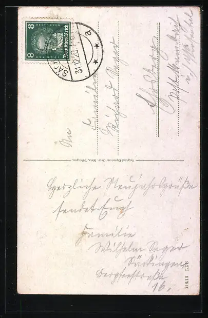 alte Ansichtskarte, gelaufen 1928, Eckknick li. unten, Bugspur li. unten, guter Zustand