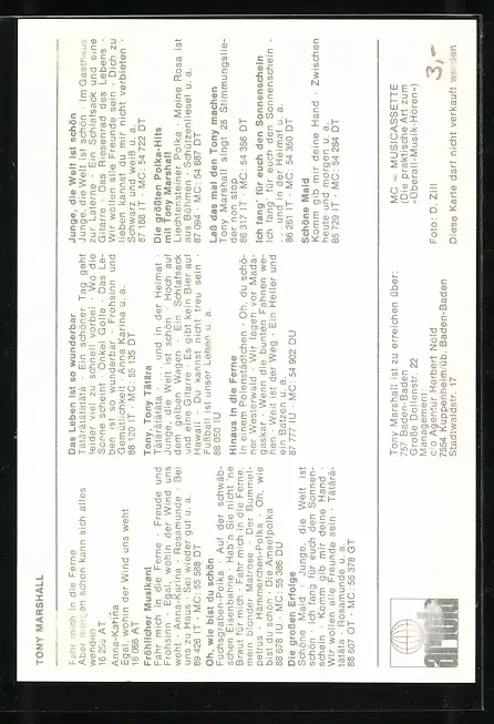 AK Sänger Tony Marshall lächelt freundlich, original Autograph des Musikers