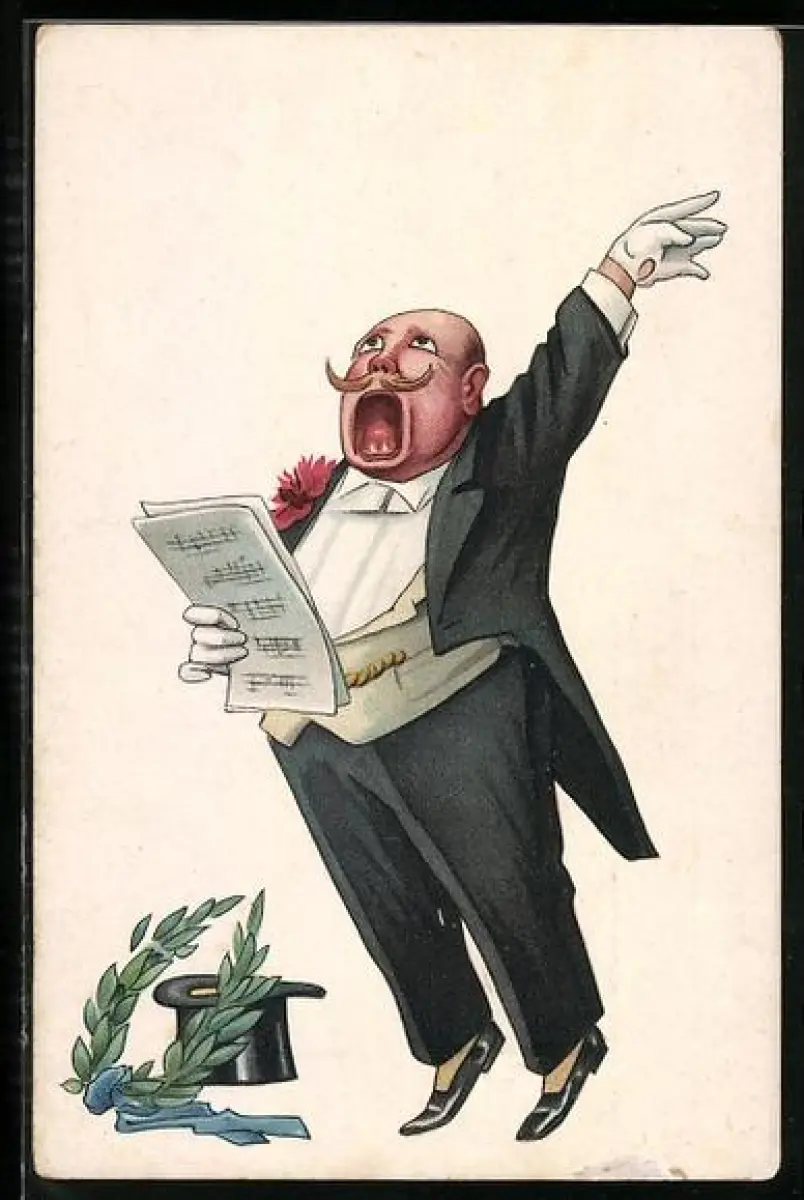 AK Sänger beim ausdrucksstarken Gesang, Zylinder und Lorbeerkranz