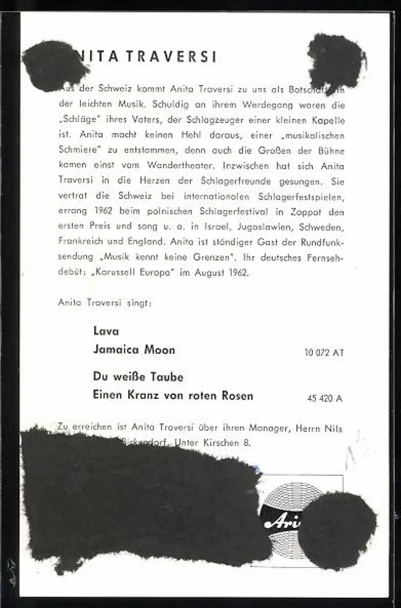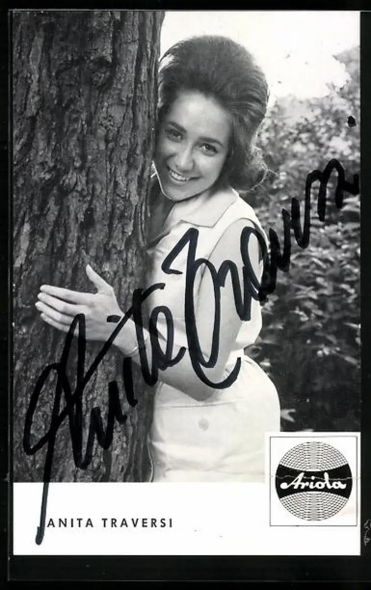 AK Sängerin Anita Traversi umarmt einen Baum, Autograph