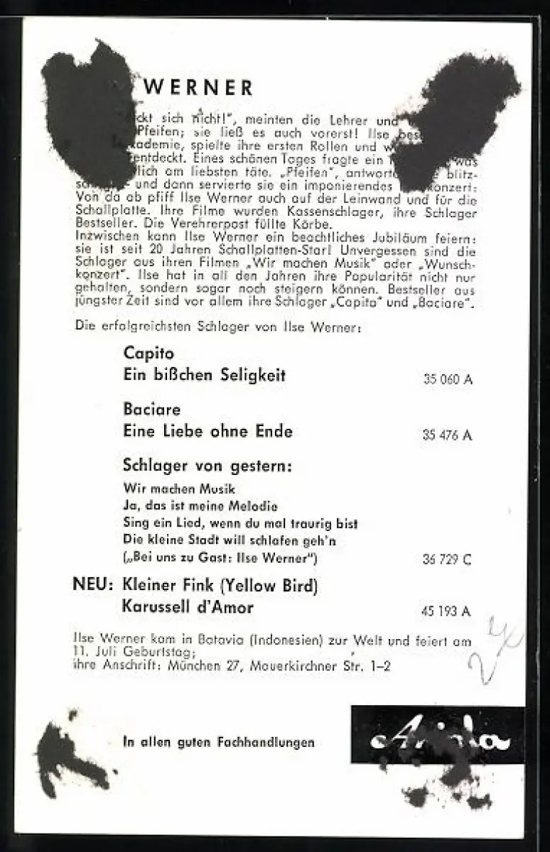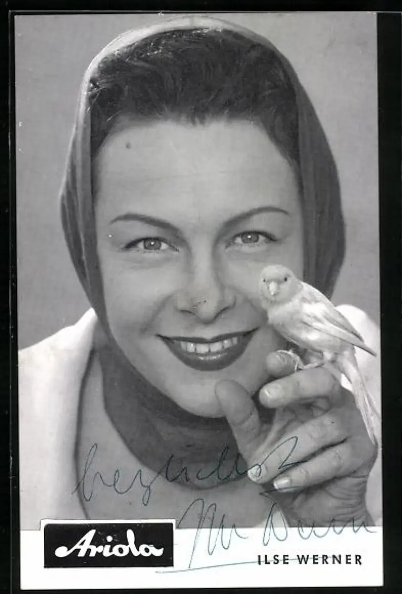AK Sängerin Ilse Werner mit Kopftuch, Autograph