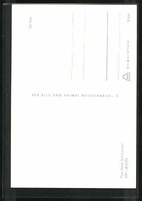 Personenbezogene Daten auf der Rückseite der Karte wurden durch blauen Textmarker unkenntlich gemacht. Die blauen Stellen sind auf die Vorderseite durchgeweicht und wirken sich negativ auf das Postkartenfoto aus