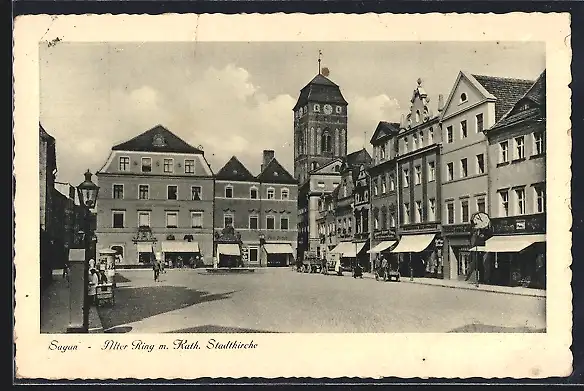 AK Sagan, Alter Ring mit Kath. Stadtkirche