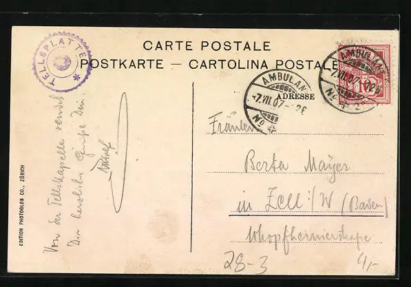 alte Ansichtskarte, gelaufen 1907, Stempelspur, guter Zustand