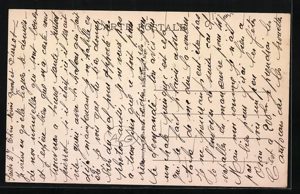 Personenbezogene Daten auf der Rückseite der Karte wurden durch blauen Textmarker unkenntlich gemacht. Die blauen Stellen sind auf die Vorderseite durchgeweicht und wirken sich negativ auf das Postkartenfoto aus
