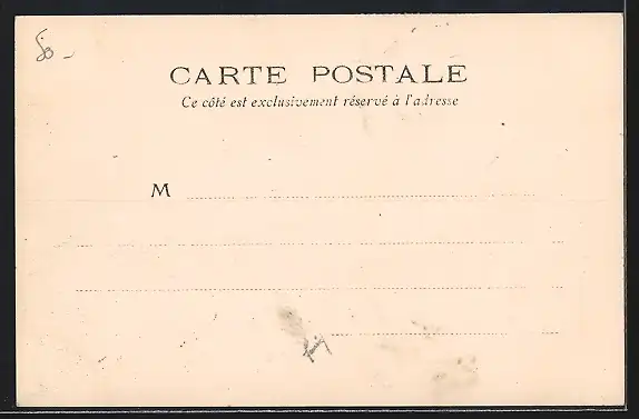 Personenbezogene Daten auf der Rückseite der Karte wurden durch blauen Textmarker unkenntlich gemacht. Die blauen Stellen sind auf die Vorderseite durchgeweicht und wirken sich negativ auf das Postkartenfoto aus