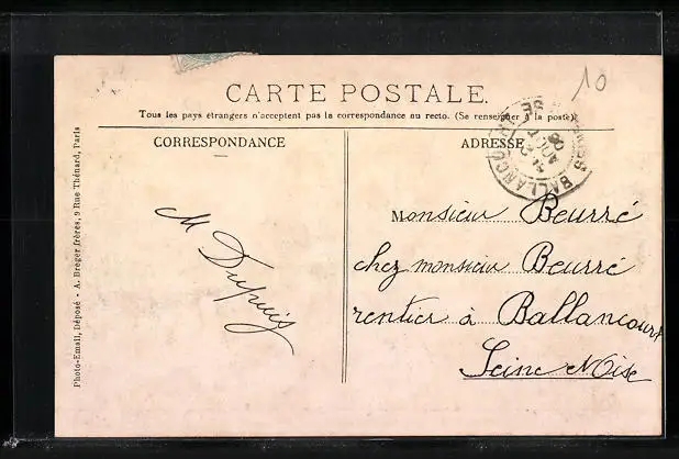 Personenbezogene Daten auf der Rückseite der Karte wurden durch blauen Textmarker unkenntlich gemacht. Die blauen Stellen sind auf die Vorderseite durchgeweicht und wirken sich negativ auf das Postkartenfoto aus