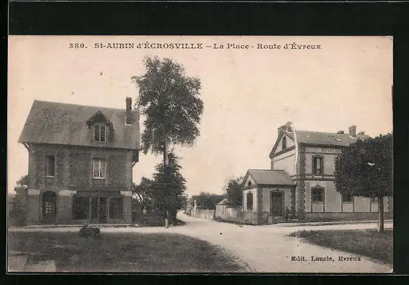 AK Saint-Aubin-d`Ecrosville, La Place, Route d`Évreux