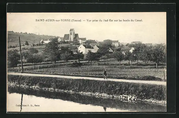 AK Saint-Aubin-sur-Yonne, Vue prise du Sud-Est sur les bords du Canal