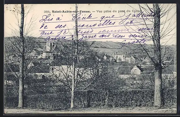 AK Saint-Aubin-sur-Yonne, Vue prise du pont du Canal