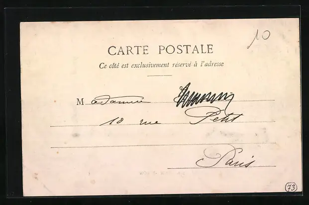Personenbezogene Daten auf der Rückseite der Karte wurden durch blauen Textmarker unkenntlich gemacht. Die blauen Stellen sind auf die Vorderseite durchgeweicht und wirken sich negativ auf das Postkartenfoto aus