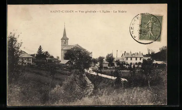 AK Saint-Cassin, Vue générale, L`Eglise, La Mairie