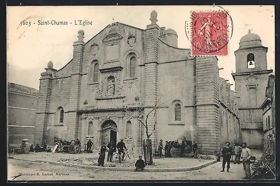 AK Saint-Chamas, L`Église et les habitants devant l`entrée
