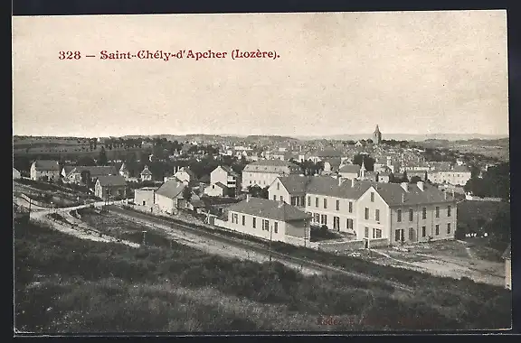 AK Saint-Chély-d`Apcher, Vue générale du village et des bâtiments environnants