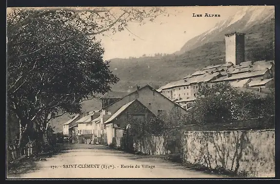 AK Saint-Clément, Entrée du Village avec Vue sur les Alpes