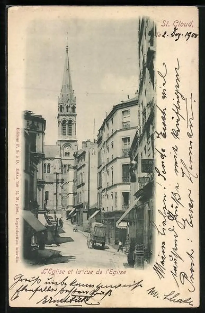 AK Saint-Cloud, L`Eglise et la rue de l`Eglise