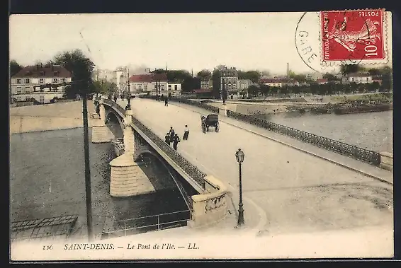 AK Saint-Denis, Le Pont de l`Île avec passants et calèche